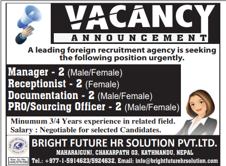 Let us know your requirements with details to offer qualitative and efficient recruitment service from our end.
